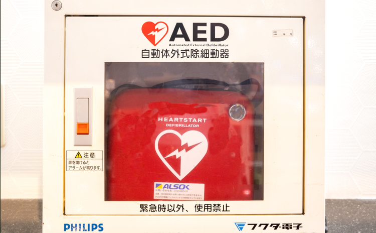 各店でAEDの講習会を開催。店舗内はもちろん、店舗近くでトラブルが発生した際にも使えるように準備しています。